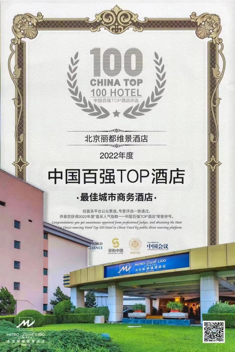 2022年度中國百強TOP100酒店榜單日前揭曉,北京麗都維景酒店位列榜單第24位,被評選為“最佳城市商務酒店”。