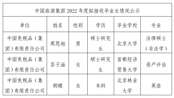 根據(jù)人力資源和社會(huì)保障部《關(guān)于按時(shí)做好 2022 年高校畢業(yè)生接收備案、報(bào)到上崗及材料審核等工作的通知》要求,現(xiàn)對(duì)我集團(tuán)在京企業(yè)擬接收 2022 年度應(yīng)屆畢業(yè)生情況進(jìn)行公示。