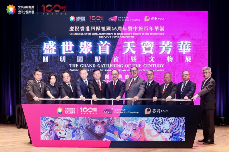 7月3日,“盛世聚首?天寶芳華---慶祝香港回歸祖國26周年暨中旅百年華誕圓明園國寶獸首文物展開幕典禮”在香港城市大學順利舉行。來自國家有關部委領導、香港特區政府有關官員、港澳地區各界精英、賢達名流、中國旅游集團合作伙伴、旅游同業等約三百人出席盛事,見證了這一難忘時刻。