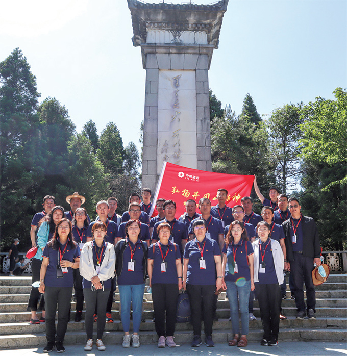 2021年中旅酒店在距離永新不到50公里的地方開展黨史學習教育。圖為員工作者赴井岡山學習時拍攝