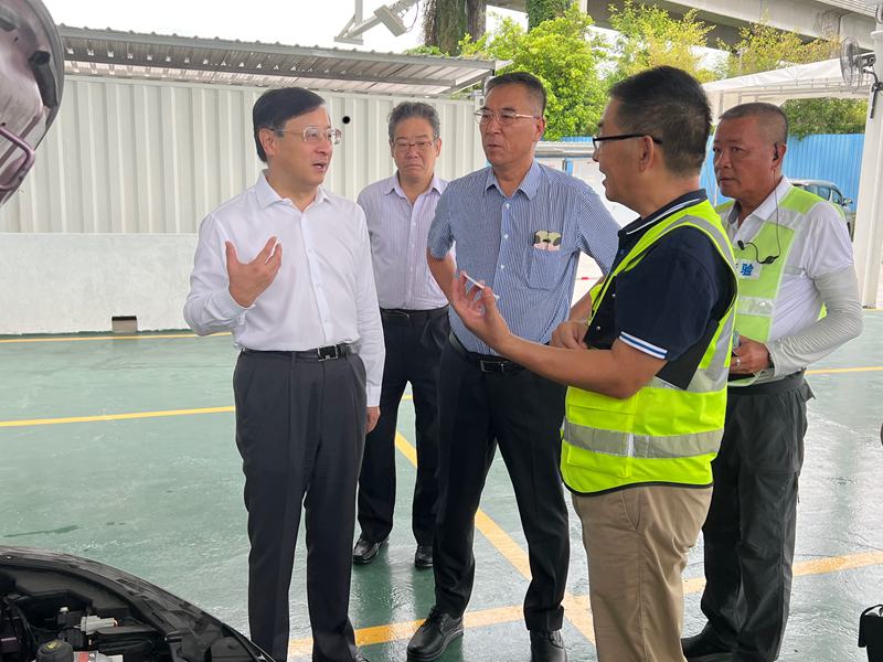 在證件部“港車北上”車輛查驗天水圍服務中心,陳寅董事長詳細了解開業以來的運營情況,實地調研車輛自動數據采集線、測試線的運作和客戶驗車流程。陳寅董事長指出,“港車北上”政策是中央支持香港發展、推進粵港澳大灣區建設的重要舉措,要以高度的責任感提供優質服務,進一步增強香港市民的獲得感,助力香港更好地融入國家發展大局。