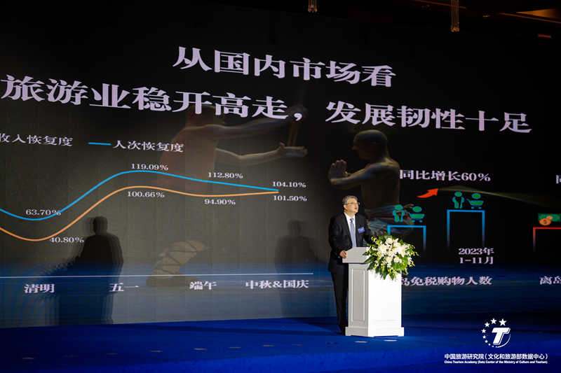 王總圍繞“繁榮與重構”論壇主題分享了看法。他指出,旅游市場從釋放性增長走向理性回歸,今年無論對中國旅游業(yè)還是全球旅游業(yè)都是非常重要的一年,經(jīng)過三年疫情沖擊的旅游業(yè)迎來新發(fā)展階段。從國內市場看,旅游業(yè)穩(wěn)開高走,暑期后旅游人次恢復放緩,客單價逐步回升,明年市場或將進一步分化。在政策和市場雙重驅動下,出入境游有望成為明年行業(yè)主要的增長點。從消費需求看,呈現(xiàn)客戶群分化、需求傾向轉變等特征。他強調,旅游企業(yè)應順應消費新趨勢,推動行業(yè)價值重構,以產業(yè)深度融合衍生新的價值鏈,以持續(xù)創(chuàng)新打造新的價值體系,以國際化視角拓展新的價值空間。