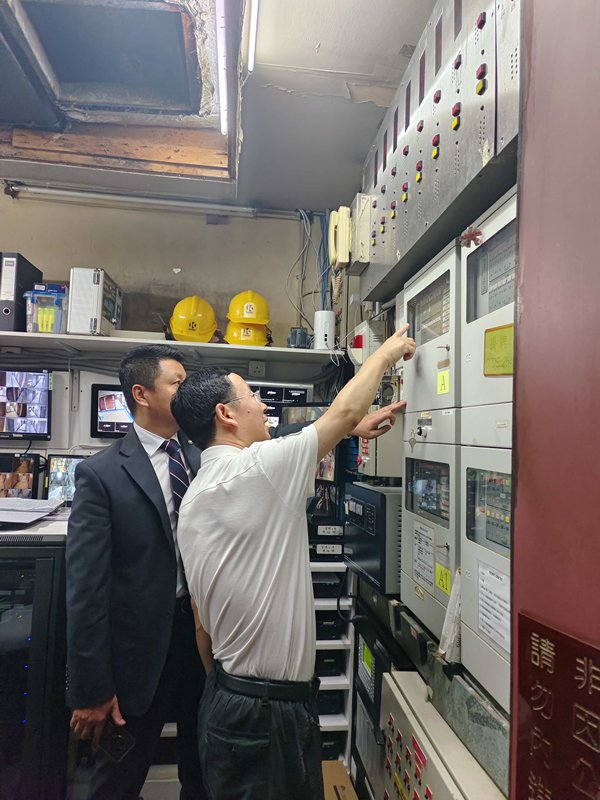 范云軍先后來到香港尖沙咀維景酒店、九龍維景酒店和旺角維景酒店,對客房、中西餐廳、廚房、監控室、設備房、布草房、消控室、配電室等區域開展檢查。重點檢查了酒店廚房衛生狀況、食品留樣及煮食器具的清洗消毒情況,以及安全出口及疏散通道是否暢通,應急照明燈、滅火器、自動報警系統等安全、消防設施器材是否完好有效等情況。對有關設備的日常運行記錄、應急處置方案及演練情況等進行了安全檢查。
