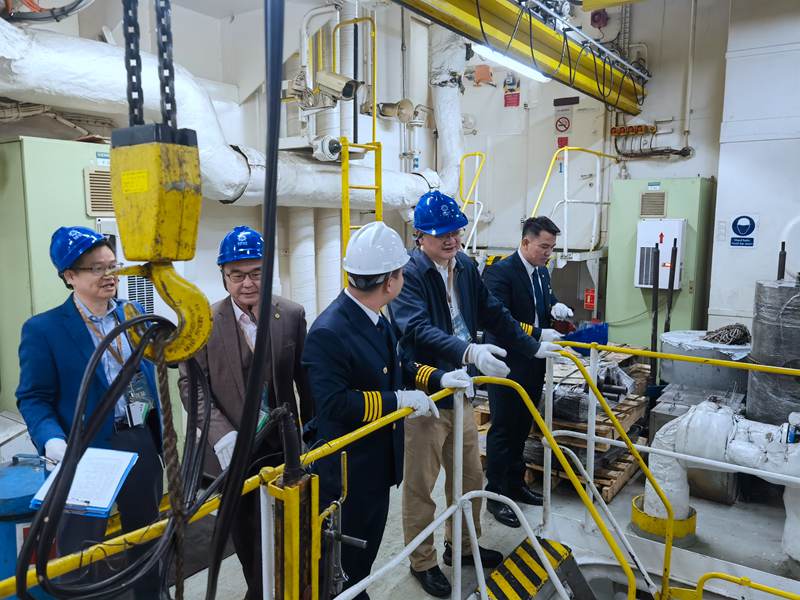 王海民仔細詢問了解各項航行設備運行狀況,深入機艙了解主機推進系統、輔機供電系統、造水系統、廢水處理系統以及壓載水系統等關鍵系統情況。