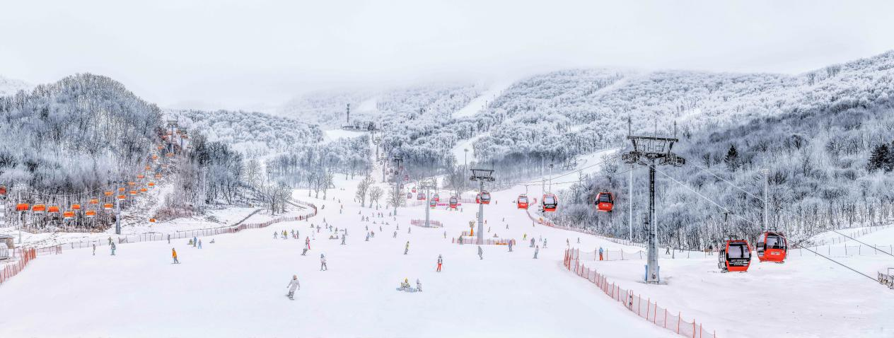 度假區擁有50條優質雪道,總長55公里,6條進口高速纜車、8條魔毯,每小時運力達22000人次,滑雪面積達230公頃,能同時滿足15000人同時滑雪。