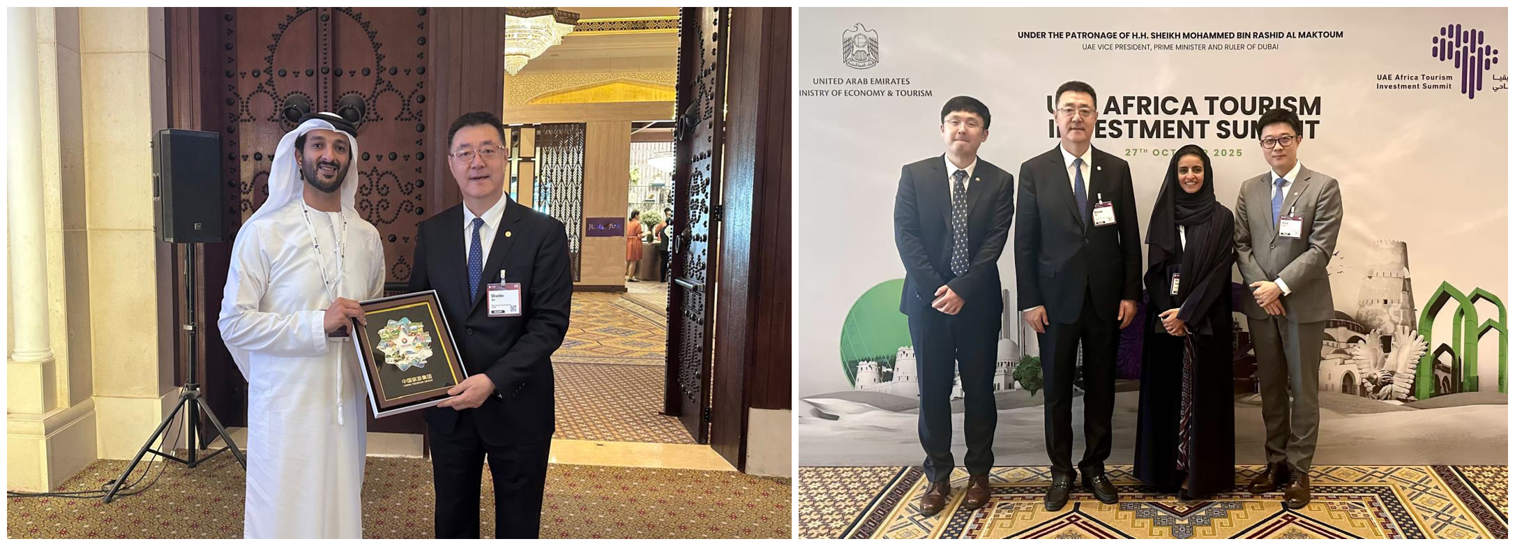 出訪期間,石善博一行應邀參加“阿聯酋-非洲旅游投資峰會”,分別拜會了阿聯酋經濟與旅游部部長阿卜杜拉·本·圖克·阿爾馬里、聯合國世界旅游組織候任秘書長納賽爾·阿爾·諾瓦伊斯,雙方就旅游市場前景、投資合作機會、更好發揮集團作為聯合國旅游組織會員單位作用等內容進行了交流。并與阿聯酋米拉爾集團、羅塔納集團、迪拜機場和迪拜免稅集團負責人進行會談,實地考察調研了其投資運營的主題公園、度假酒店、大型購物中心等項目,探討雙方在旅行、免稅、酒店、景區等領域業務合作空間。期間,石善博還拜會了我國駐阿聯酋領事館總領事歐渤芊,詳細了解當地的投資環境、旅游市場、中資企業在迪拜投資發展等情況。