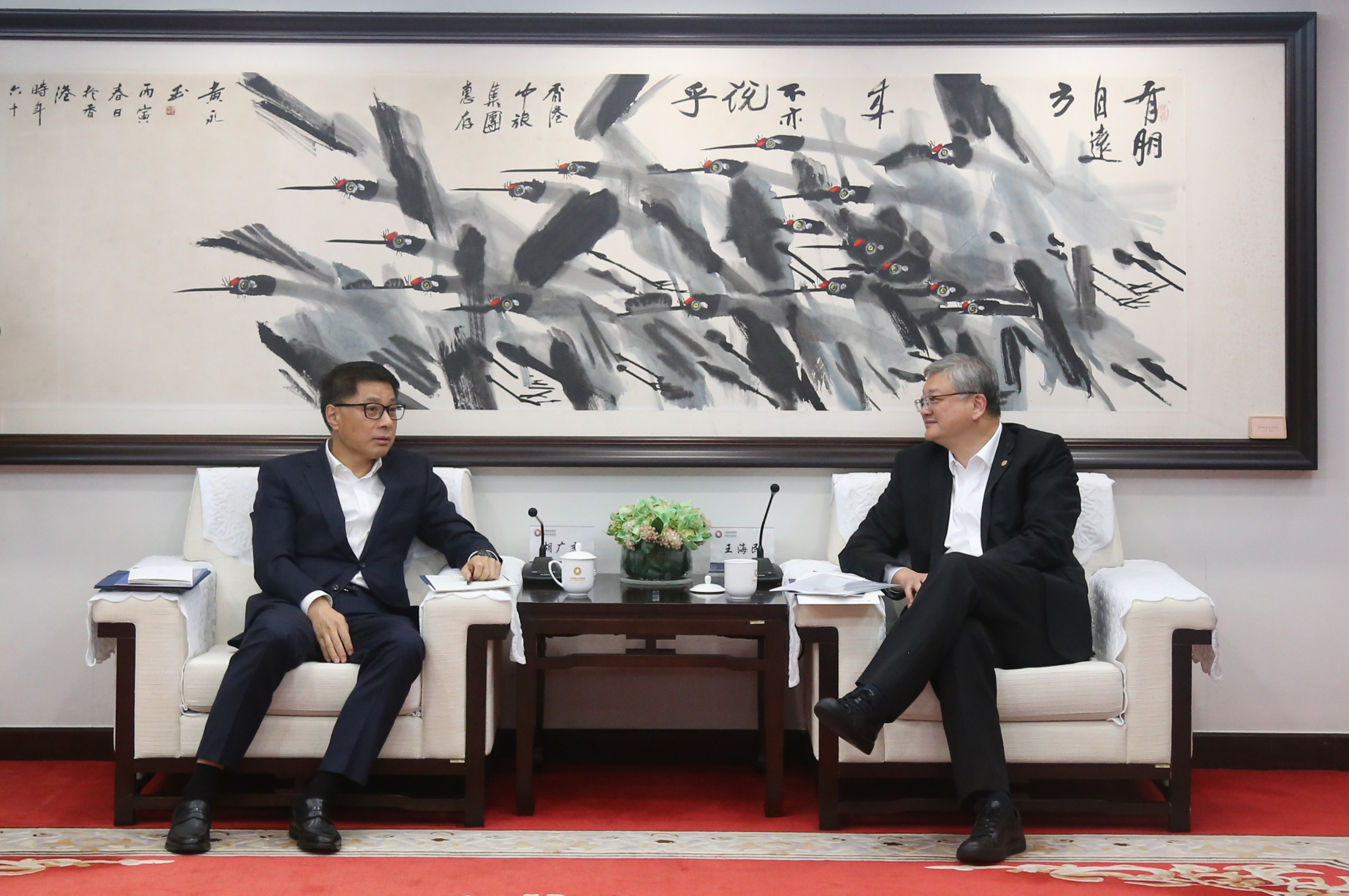 1月14日,集團董事長王海民在香港會見上海市普陀區委書記胡廣杰一行。