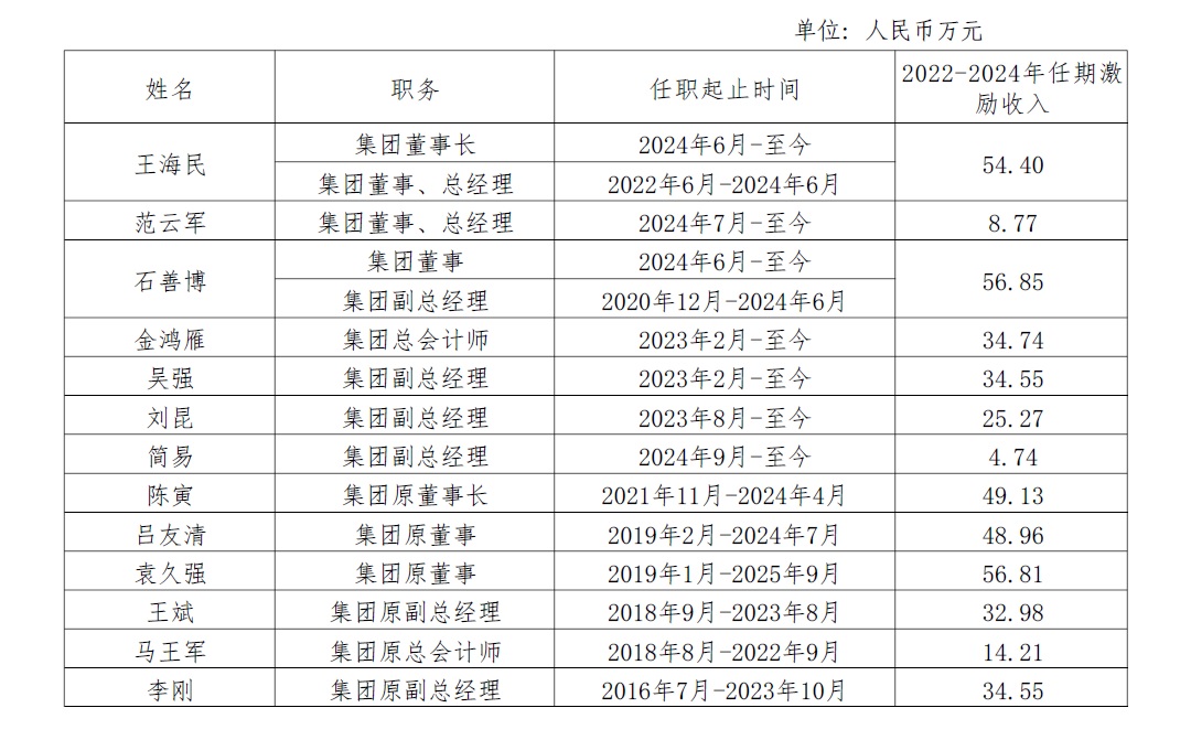 中國旅游集團(tuán)有限公司企業(yè)負(fù)責(zé)人2022-2024年任期激勵(lì)收入情況