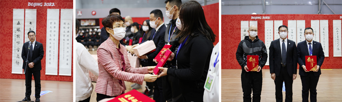 活動(dòng)現(xiàn)場,賈凱副部長發(fā)表了熱情洋溢的講話,他從參與中旅酒店誓師大會開始憶往昔,到憧憬冬奧會服務(wù)現(xiàn)場盛況來勵(lì)征程。他表示,服務(wù)這樣一場國際賽事大家要感到榮幸和自豪,要勇于擔(dān)當(dāng)和奉獻(xiàn),在學(xué)習(xí)中得到成長,堅(jiān)定信心履職盡責(zé),以“冬奧盛會必定有我,精彩冬奧成就大我,服務(wù)奧運(yùn)我將無我”的決戰(zhàn)姿態(tài)迎接冬奧會開幕。中旅酒店黨委委員、副總經(jīng)理、冬奧會項(xiàng)目前方總指揮陳月亮轉(zhuǎn)達(dá)了集團(tuán)領(lǐng)導(dǎo)對現(xiàn)場團(tuán)隊(duì)的新年祝福。晚會前舉行了簡短的表彰儀式,對2021年4月誓師會以來表現(xiàn)較好的員工給予表彰,用榜樣的力量來感染人、鼓舞人,倡導(dǎo)大家人人爭做榜樣、爭做先鋒。簡短的頒獎(jiǎng)活動(dòng)過后,跨年元旦晚會正式拉開帷幕。