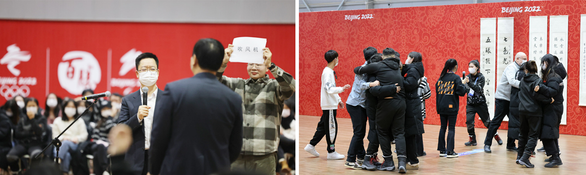 活動(dòng)中有互動(dòng)游戲,猜字謎與冬奧會巧妙鏈接起來。從運(yùn)動(dòng)項(xiàng)目猜到住宿餐飲服務(wù)工具,生動(dòng)形象地向大家詮釋,運(yùn)動(dòng)員締造的每一份精彩,都有在冬奧村精心服務(wù)、傾情奉獻(xiàn)的每位工作者的一份功勞。