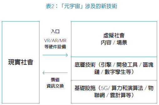 從技術迭代看,「元宇宙」沒有產生單一的顛覆性技術,而是新技術的系統集成應用。「元宇宙」的底層技術含了虛擬現實、人工智能、物聯網、區塊鏈、數字孿生等已經有一定發展基礎的技術。「元宇宙」可以看做是數字化進程中全鏈條的集群式創新,涵蓋了各類新技術。通過技術集成應用,使價值、信息在虛擬和現實之間進行實時、無限的流轉和交換。