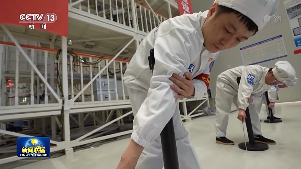 航天科技集團(tuán)五院總環(huán)部神舟飛船總裝班組組長 張舸:要確保設(shè)備安裝平面與這個設(shè)備操作桿是一個垂直狀態(tài),也就是90度,完全90度的狀態(tài),才能夠確保它能很精準(zhǔn)地插入到孔位。