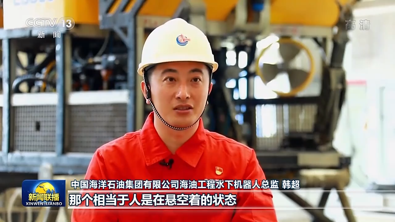 中國海洋石油集團(tuán)有限公司海油工程水下機(jī)器人總監(jiān) 韓超:水下面是有水流的,不像我們在陸地。陸地上你有支撐,那個(gè)相當(dāng)于人是在懸空著的狀態(tài)。